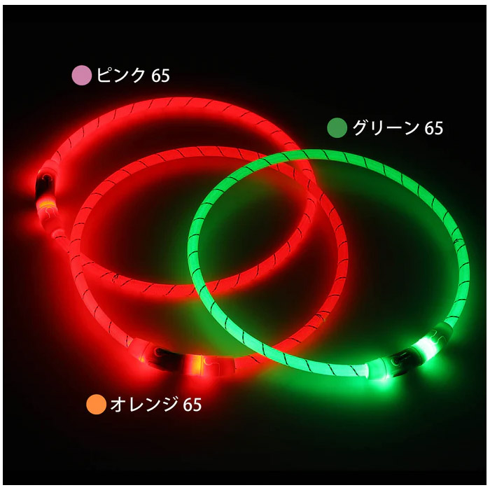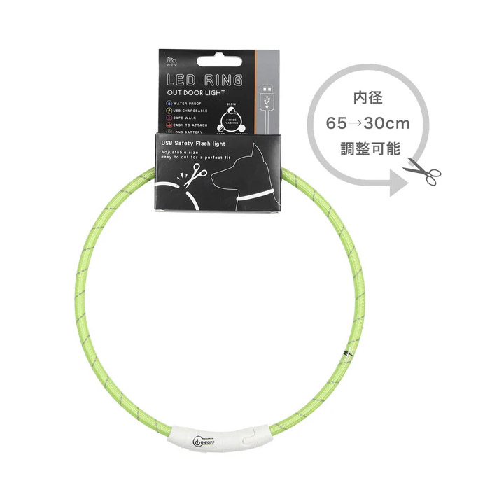 ・水中での使用はできません。水没させないでください。 ・点灯方式、使用頻度、充電時間等、様々な要因により連続使用可能時間は変動します。 ・首輪を調整する場合は、首と首輪の間に指が2本ほど入るくらいの余裕を持たせて下さい。 ・一度に大きく切りすぎず、少しずつ調整するのがおすすめです。 ・カットする際は安全に十分ご注意ください。 |