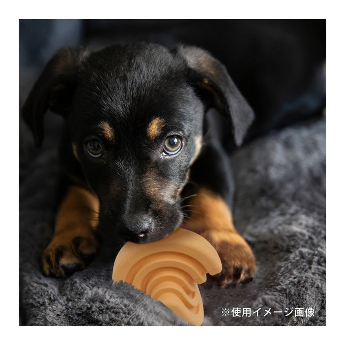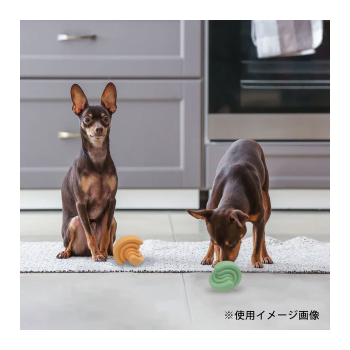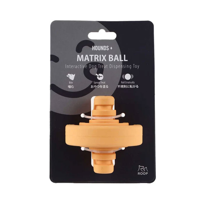 不思議な形状の「マトリックスボール」は硬すぎず柔らかすぎないゴム製のおもちゃです。溝にペースト状のおやつを塗ると、香りや味が加わり、さらにワンちゃんの興味をひきつけることができます。ユニークなコマの形状で不規則に転がるため、追いかけたり転がしたりする楽しさが続き、飽きることなく遊べます。