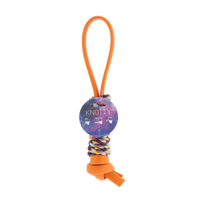 「ノッティー」は、ワンちゃんが大好きなロープおもちゃシリーズです。色鮮やかなビタミンカラーのロープとゴムが、遊ぶ前からワクワク感を盛り上げてくれます。