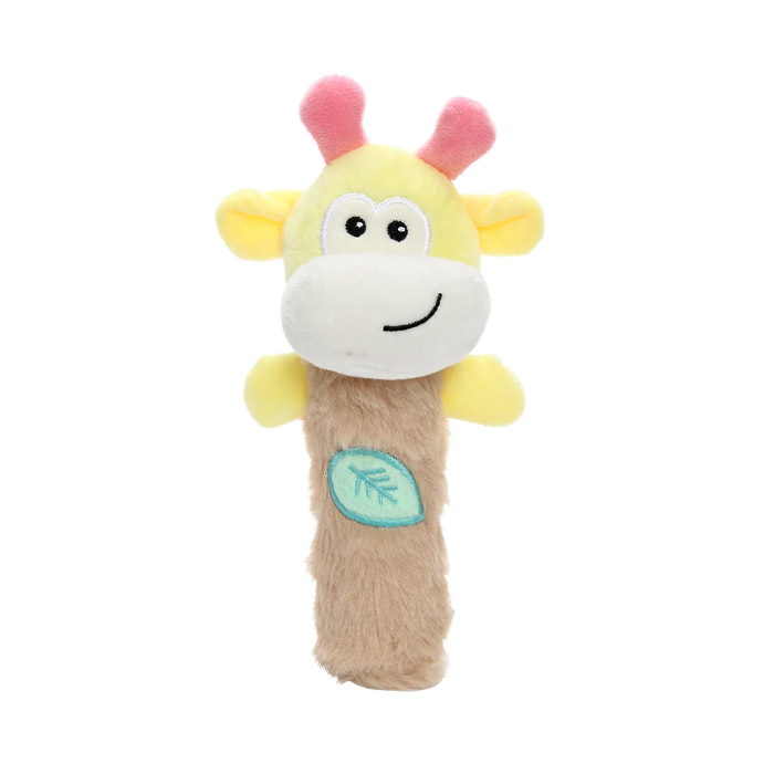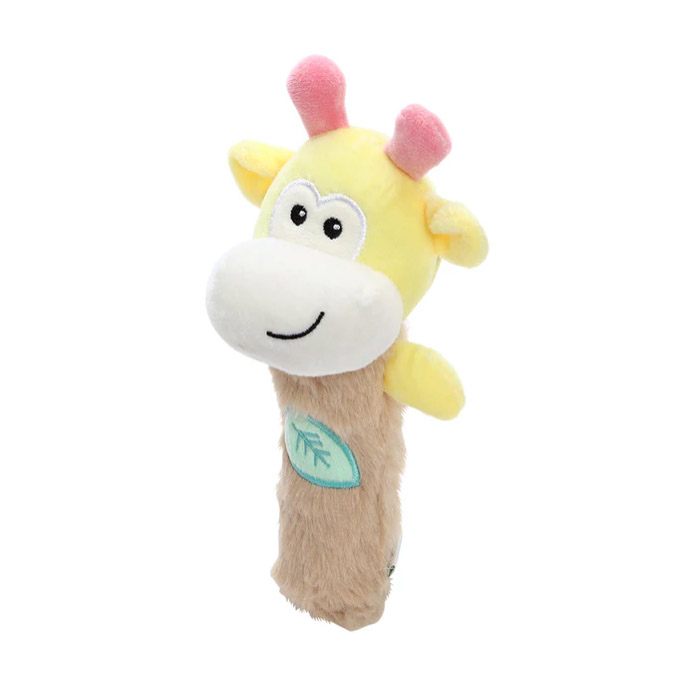 キリンさんの頭部にスクウィーカーが入っています。柔らかいおもちゃが大好きなワンちゃんにお勧めです。