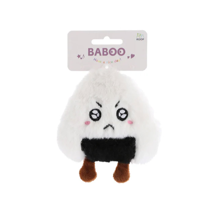可愛らしいおにぎりさんの顔部分にスクウィーカーが入っています。柔らかいおもちゃが大好きなワンちゃんにお勧めです。