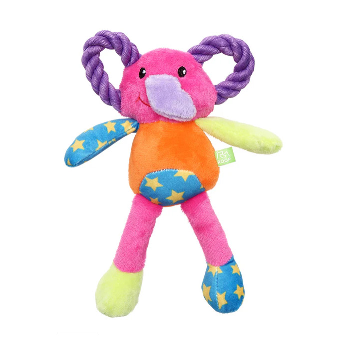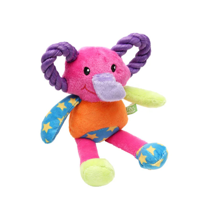 「バブー ルビー」は、目に鮮やかなビタミンカラーのゾウさん型ぬいぐるみにスクウィーカーが入っています。耳はTシャツ生地を編んだロープになっています。柔らかいおもちゃが好きなワンちゃんにおすすめです。