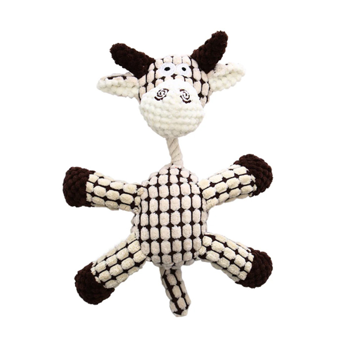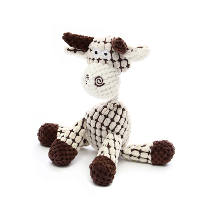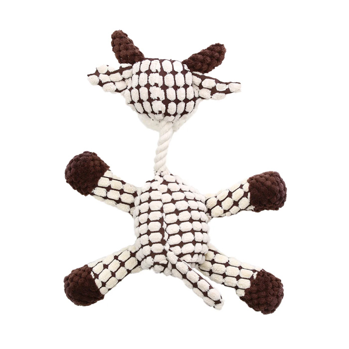 「デイジーカウ」は、くたっとした姿が可愛い雌牛の形をしたぬいぐるみです。触り心地の異なる生地を数種類使っており、柔らかいおもちゃが大好きなワンちゃんにおすすめです。