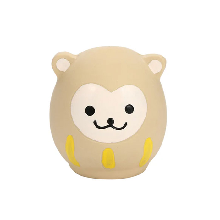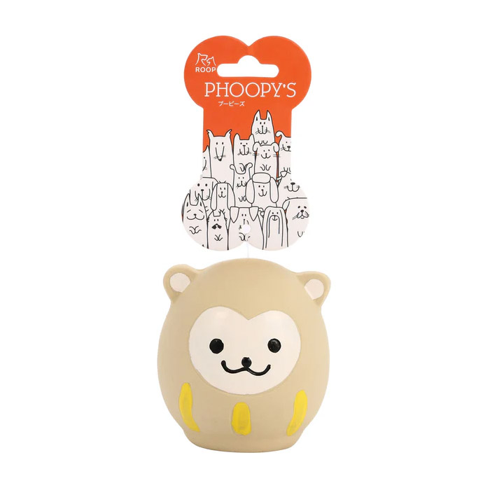 「プーピーズ さる」は、だるま型ボディーにハート型のお顔がキュートな、おさるの形をしたゴムおもちゃです。ソフトタイプのラテックス製なので柔らかく、噛みつきやすいです。空気の出入でプーピー音が鳴ります。