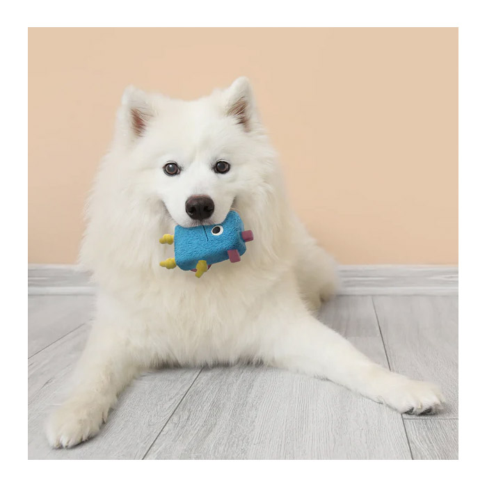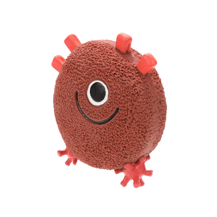 柔らかなラテックス素材でできているので、ワンちゃんが噛みつきやすく、安心して遊べます。押すたびに可愛いプーピー音が鳴り、その表情とのギャップがクセになること間違いなしです♪