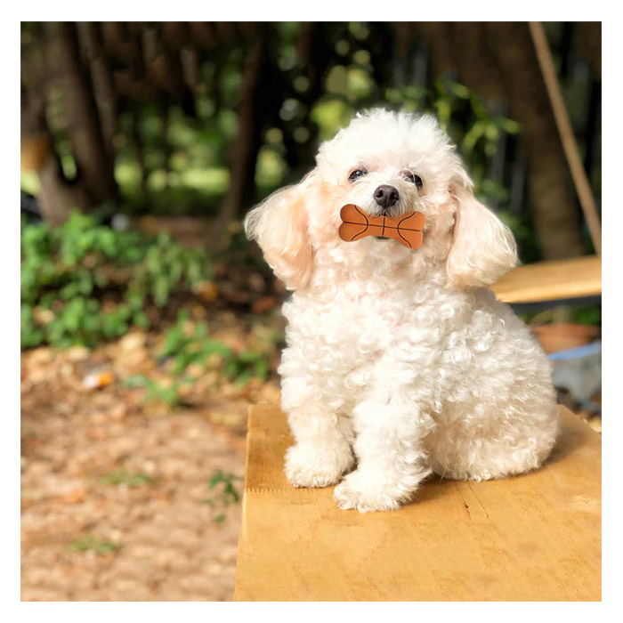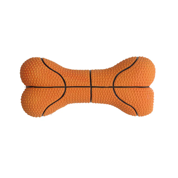 「プーピーズ バスケボーン」は、バスケットボールそっくりに作った骨型のゴムおもちゃです。ソフトタイプのラテックス製なので柔らかく、噛みつきやすいです。空気の出入でプーピー音が鳴ります。