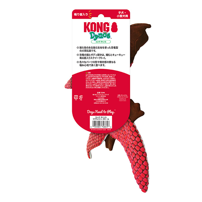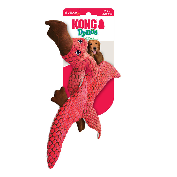 コング犬用ソフトトイ。恐竜型の強化生地を使用、鳴り笛入り。
