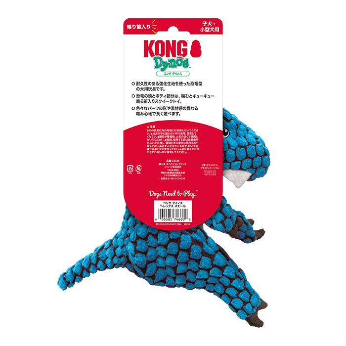 コング犬用ソフトトイ。恐竜型の強化生地を使用、鳴り笛入り。