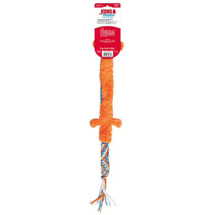 コングの超ロング型犬用ソフト玩具。鳴り笛、デンタルロープ付。