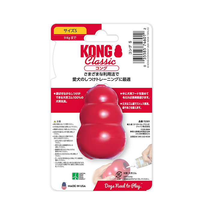 ・内側が空洞になっており、コング独自の凹凸に専用ペーストやフードを入れることで、犬が中身を取り出そうと夢中になります。