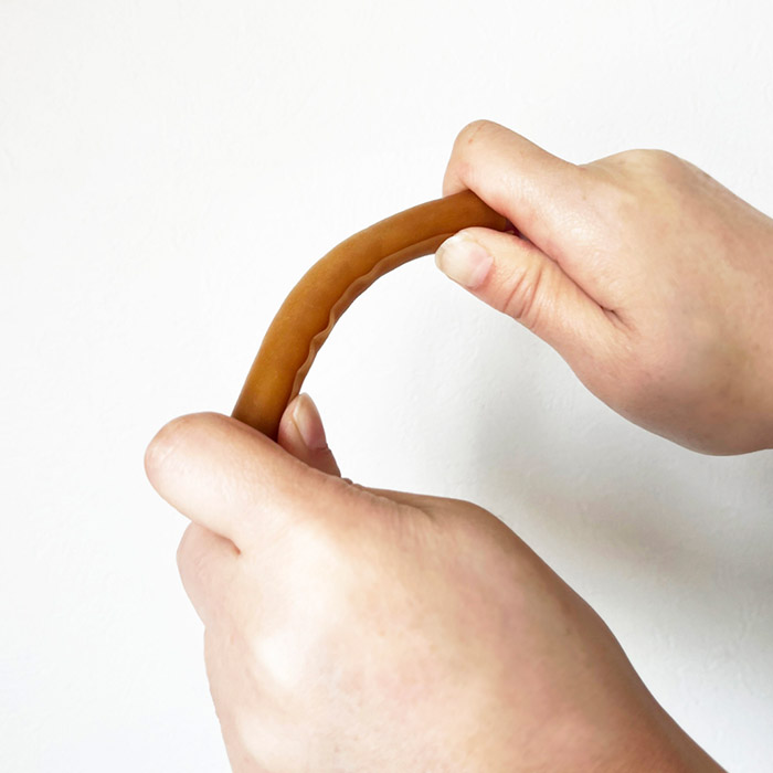 ・程よい硬さ柔軟性を持たせ、大きい塊を飲み込んだり、口の中を傷つけたりしにくいよう配慮して設計されています。