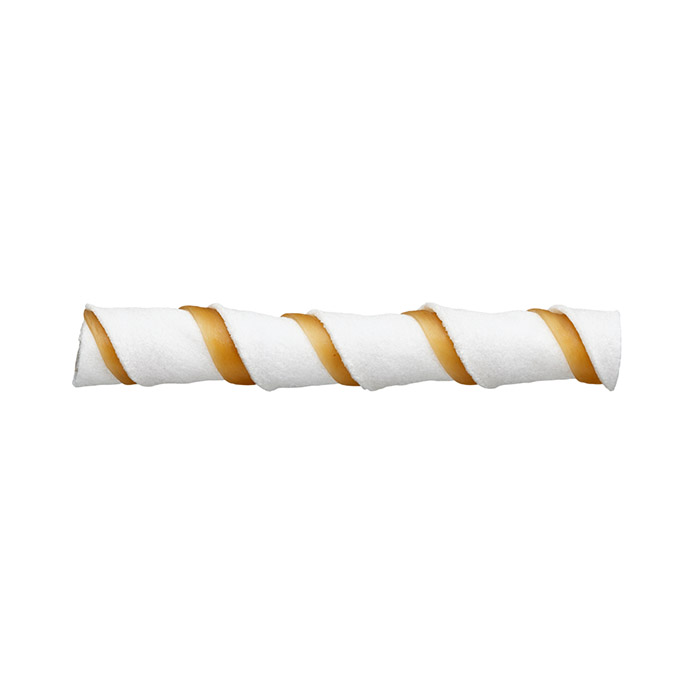 ・色々な細さにカットした牛皮と、ササミをねじり合わせた複雑なツイスト型。歯ががかり良くしっかり噛める