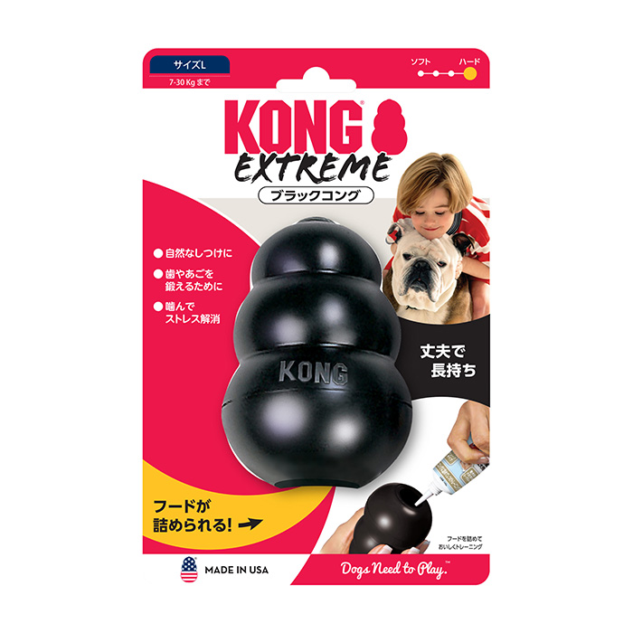 ・赤いコングよりゴムが硬め、噛む力が強い犬向け。
