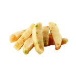 | 肉類(鶏ささみ、鶏肉)、小麦粉、糖類、じゃがいも、タピオカ加工でん粉、食塩、植物油脂、ほうれん草、にんじん、グリセリン、トレハロース、膨張剤、ソルビトール、ポリリン酸Na、保存料(ソルビン酸K、デヒドロ酢酸Na)、酸化防止剤(ビタミンE)、リン酸塩Na、着色料(黄4、黄5、青1、赤3) |