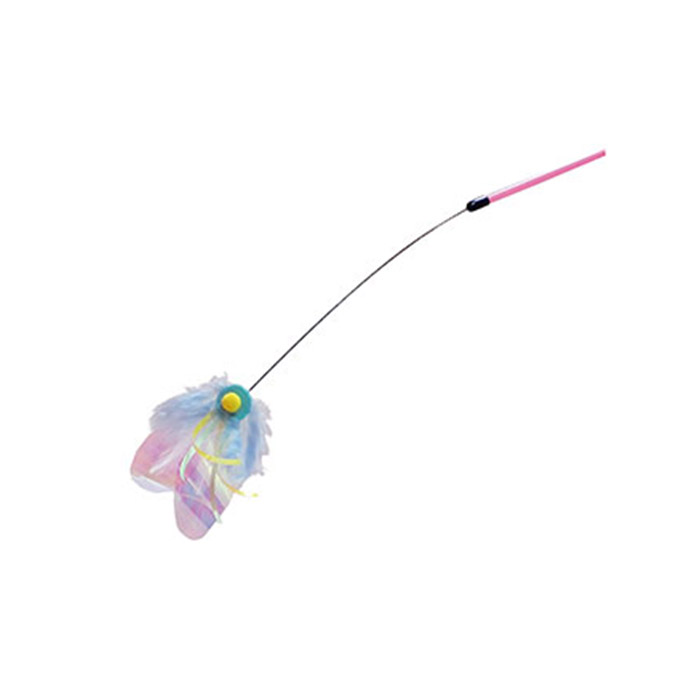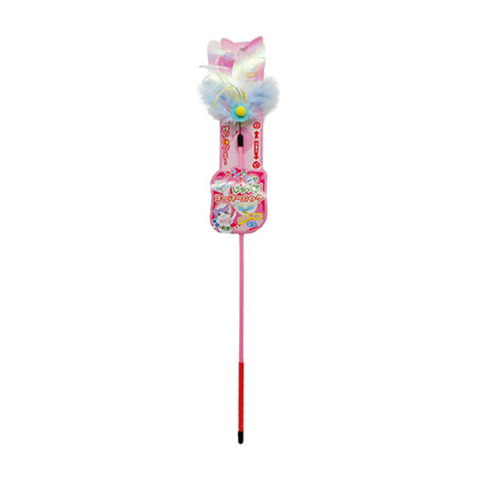 | 伸縮を短くして素早く動かしたり、長くしてゆったり動かし、カシャカシャ振ってください。カシャカシャ音、きらきら見やすい色、フワフワと天然羽毛で猫ちゃんを誘います。 |