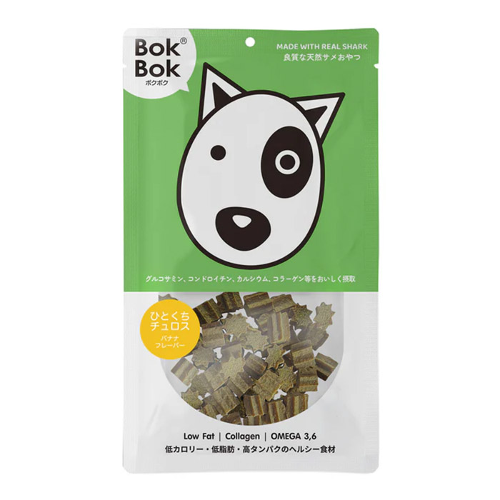 BokBok(ボクボク)は、サメを主原材料に使用した、タイランド産の犬用サメおやつです。サメ肉は低カロリー、低脂質、高タンパク質で、人間用サプリメントが注目されているのと同様、幼犬から老犬、幼猫から老猫まで幅広い世代に適した食材です。