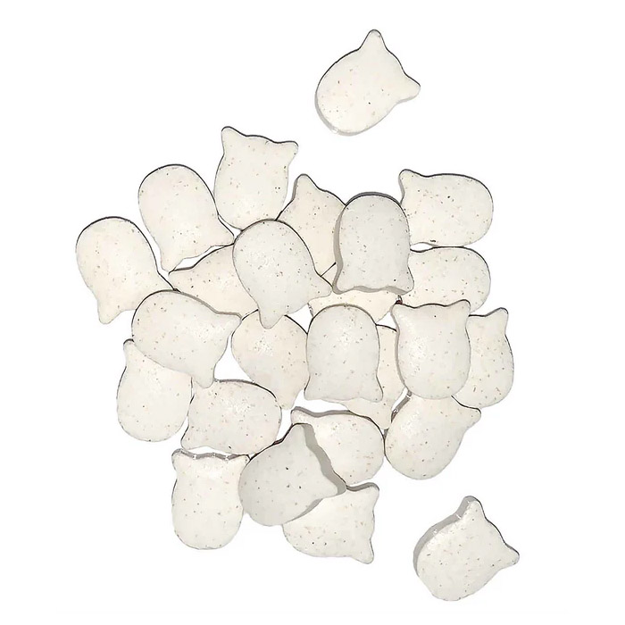 硬さはラムネ菓子・落雁(らくがん)と同じくらいです。手で簡単に割ることができますので、お好みの大きさに調整したり、水分を加えて柔らかくすることも可能です。