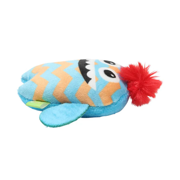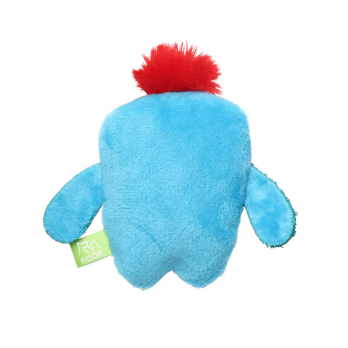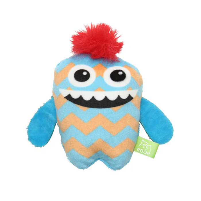 「カラフルモンスター スカイブルー」は、赤いたてがみをもったシマシマ模様のオバケです。ボディーにはスクウィーカーが入っています。
