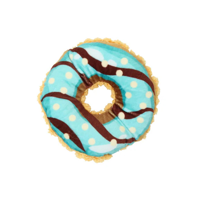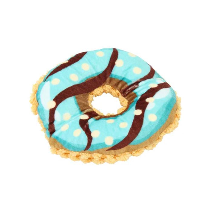 「ドーナツ チョコミント」は、爽やかなブルーが目印の中心に穴が空いたドーナツ型おもちゃです。ボディーを手で押すとカシャカシャという音が楽しめます。