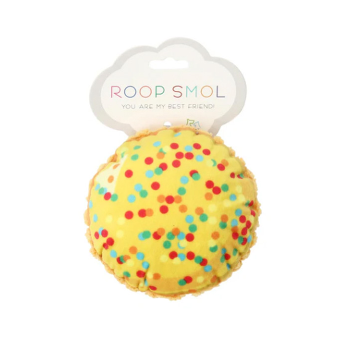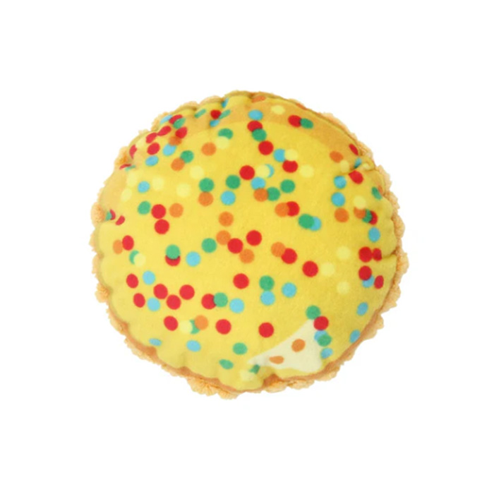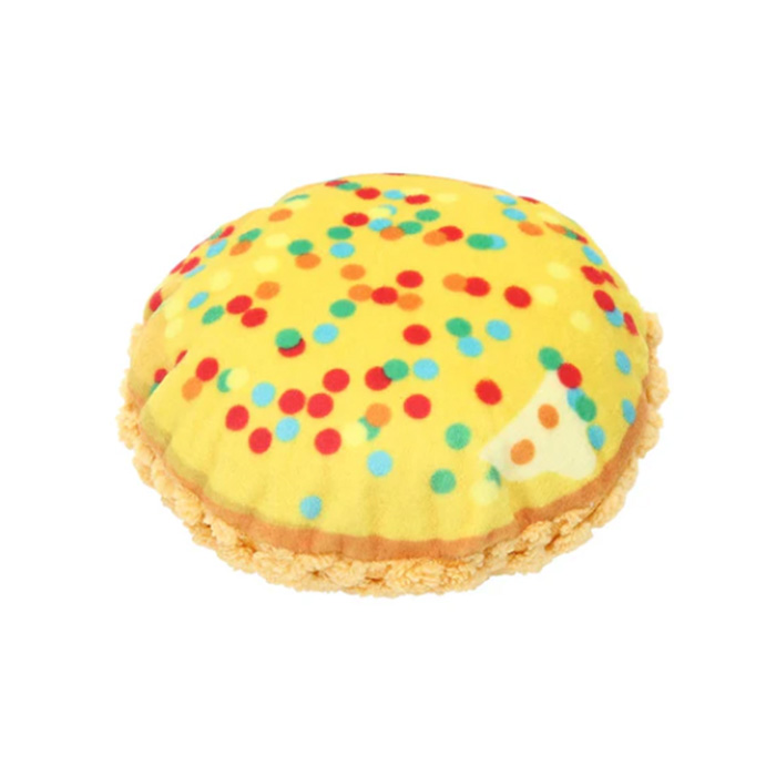 「ドーナツ プリン」は、黄色にカラフルなドットが目印の丸型ドーナツのおもちゃです。ボディーを手で押すとスクイーカーのプープー音が楽しめます。