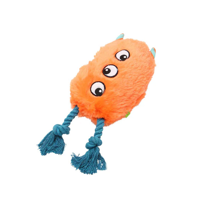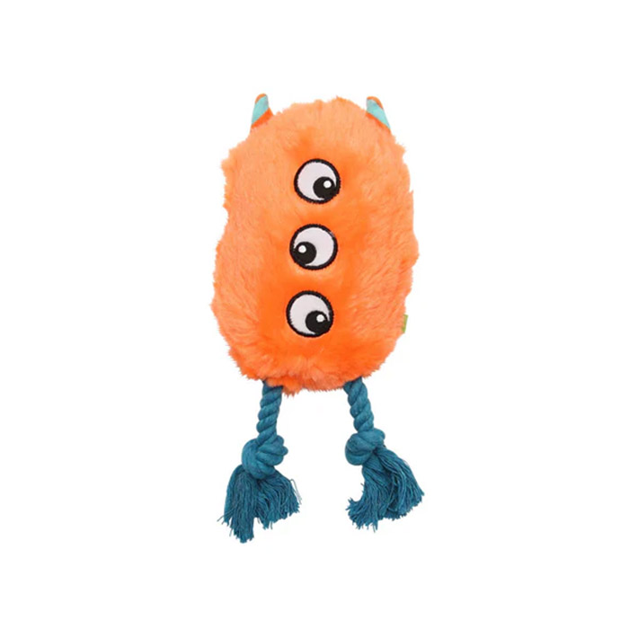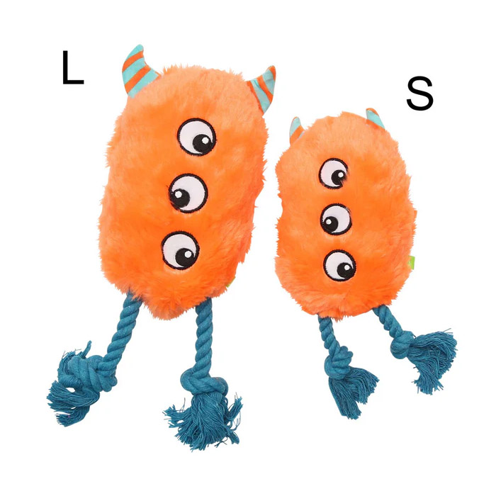「モンスターオリヴァー」は、ビビッドなオレンジ色の3つ目モンスター型犬用おもちゃです。